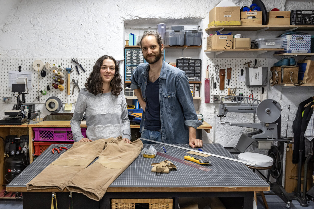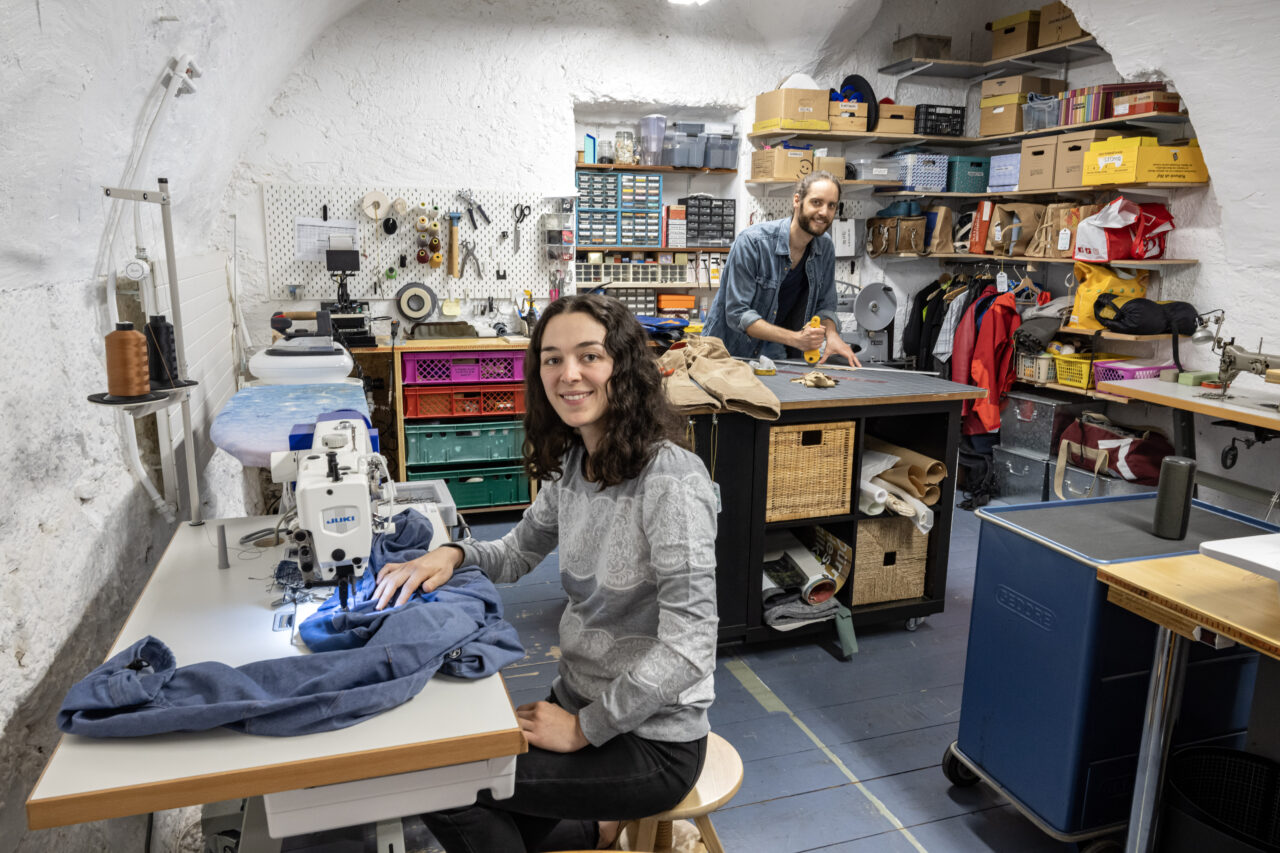 C’est dans de jolis locaux au fond d’une cour d’artisans à Saint-Blaise que la Rebletzerie s’est installée désormais. Cet atelier textile circulaire est spécialisé dans la réparation et la valorisation des textiles. Il a été fondé par Joana Simond et Julien Gurtner. Leur philosophie ? Changer le modèle textile industriel de consommation jetable, en développant un modèle durable basé sur la récupération, la refabrication et la réparation.